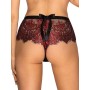 Si vous aussi, vous faites partie du groupe des amateurs de belles dentelles extrêmement féminines, cette lingerie est faite pour vous. Il s'agit d'un motif particulièrement attrayant basé sur une dentelle rouge foncé d'une beauté exceptionnelle, avec un effet de cils sur les bords. Les shorts sont légèrement plus hauts, plus amples, conçus pour plaire à l'œil avec leur design inhabituel. La coupe est galbée et se termine par un nœud au-dessus des fesses.