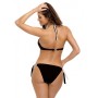 Maillot de bain deux pièces dont la coupe est similaire à celle d'un bikini. En noir et blanc, il est élégant et tentant. Il est également très beau sur une peau bronzée. Soutien-gorge noir lisse à double bretelles, noué au cou. Le circuit est fixé à l'arrière. La construction rembourrée, avec push-up et armatures, fronce instantanément, rapproche les seins et les agrandit optiquement, créant un look féminin désirable sur la plage. Le push-up existe en tailles S, M, L et est amovible du soutien-gorge. La culotte a des bretelles élégantes et fines, également nouées, cette fois de part et d'autre des hanches. Le maillot est cousu dans un tissu italien de haute qualité. La dernière collection de l'été 2019.