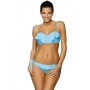 Joli maillot de bain deux pièces décoré des volants aériens à la mode cette saison. Avec un nœud doré au centre de l'encolure. Fond de coupe brésilienne. Si vous rêvez d'une poitrine large, ferme et sexy, joliment ramassée sur le décolleté, cette proposition est faite pour vous. Le maillot de bain a un aspect doux et innocent, il est disponible dans de nombreuses couleurs attrayantes et dans un tissu souple et élastique. Le soutien-gorge se distingue par une merveilleuse construction destinée aux poitrines petites et moyennes - il est rembourré et possède un assez grand rembourrage push up, placé en permanence dans le soutien-gorge. Sangles réglables et détachables, idéales pour le bronzage du corps. Circuit fermé par une boucle. La culotte est sexy, nouée sur les côtés brazyliens avec un volant en haut. Pour un effet complet, le bas doit être tiré vers le haut des hanches de façon à ce que sa forme triangulaire décore joliment le bas, qui dépasse partiellement le contour du bas.