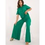 Un ensemble élégant et confortable qui combine parfaitement le style décontracté avec une touche d'élégance. Fabriqué en viscose légère et aérée, il assure un confort toute la journée, parfait pour une utilisation quotidienne et au travail. La chemise de coupe classique a des manches courtes, un col et une fermeture à boutons, lui donnant un caractère intemporel. Les larges pantalons à taille haute mettent en valeur la silhouette, et la fermeture éclair latérale cachée garantit une finition esthétique et un ajustement confortable. Les poches latérales insérées ajoutent fonctionnalité et caractère décontracté. Le motif lisse et le design minimaliste permettent d'associer facilement l'ensemble avec différents accessoires, créant des styles pour différentes occasions. C'est le choix idéal pour les femmes qui apprécient le confort et le style intemporel !
