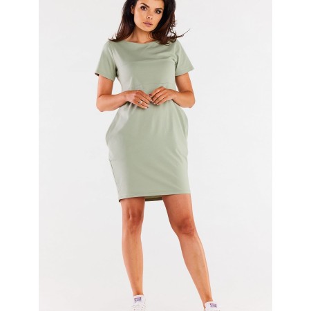 Robe confortable pour l'été. Mini robe à manches courtes. Une coupe bombardier qui dissimule parfaitement toutes les imperfections du corps. Conçue et cousue en Pologne.