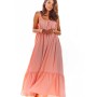Robe ample et surdimensionnée avec un décolleté dans le dos. S'adapte parfaitement à la marche. La coupe ample permet de s'adapter à toutes les silhouettes. Le bas de la robe est fait d'un volant. La robe est idéale pour l'été. Fabriqué en viscose aérée et naturelle.