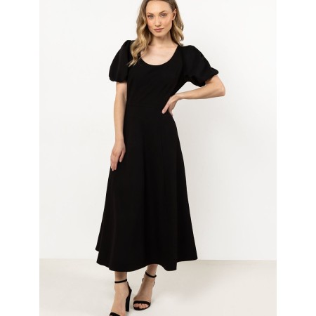 L'élégance et le confort, cette robe est le choix idéal pour de nombreuses occasions. Le haut ajusté avec un décolleté profond met subtilement en valeur la silhouette, tandis que la jupe évasée ajoute de la légèreté. Les manches courtes froncées, terminées par un élastique, lui confèrent un caractère délicat, et l'ouverture sur le côté apporte une touche moderne. La fermeture éclair dissimulée assure confort et ajustement parfait.